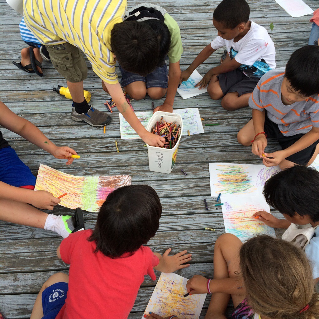 Some other great projects the kids loved were making Eric Carle inspired book covers, Calder inspired mixed media mobiles, and texture drawings using the rubbing technique with crayons.