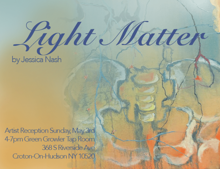 Light Matter Art Show Posted on April 27, 2015 by jessicanashart Join me for an artist reception Sunday, May 3rd from 4-7pm at the Green Growler in Croton Share this: Click to share on X (Opens in new window) X Click to share on Facebook (Opens in new window) Facebook Like Loading... Related Published by jessicanashart View all posts by jessicanashart