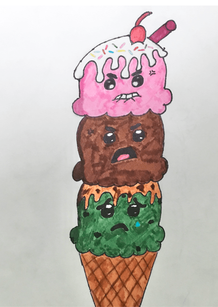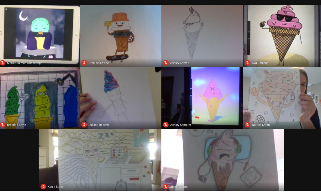 We started off the year creating “Personal Ice Cream Characters” after playing a few ice breakers where we got to know each other, students thought about their interests, personality traits, and of course- their favorite ice cream flavor, to design a character that represented themselves. Students were given a choice of materials and practiced drawing a variety of ice cream cones, sundaes, and popsicles, before choosing their favorite. Check out some of their work below!