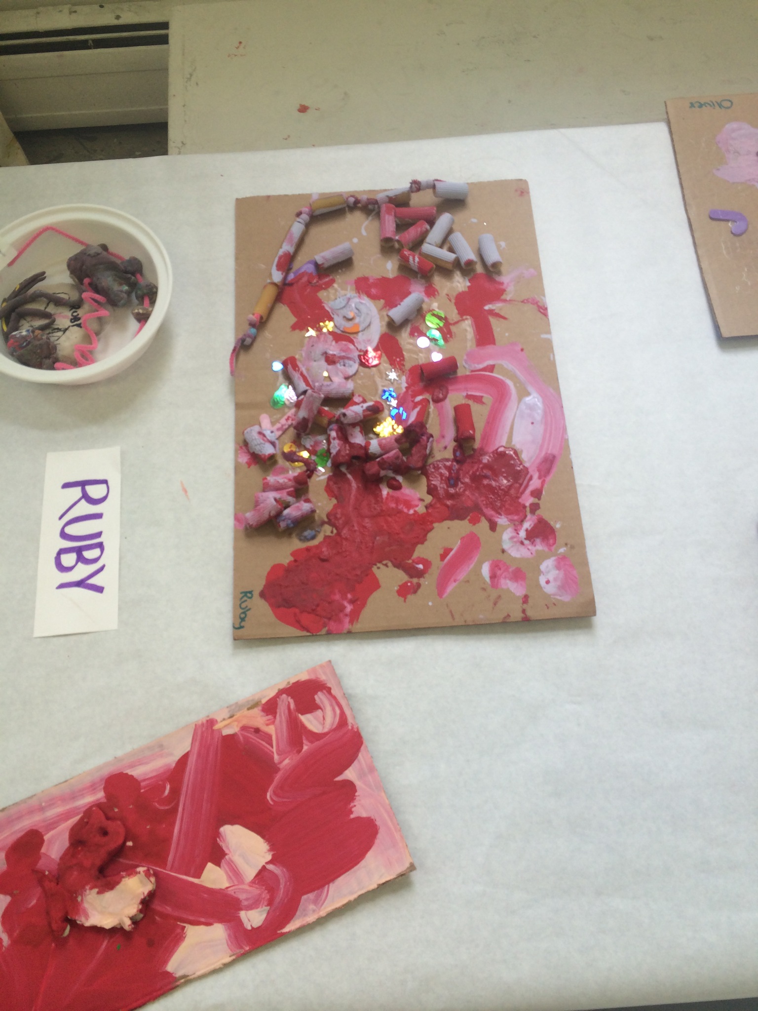 I unfortunately did not have time to get photos of everyone’s wall with all the craziness, but I’m very happy with the way it all came together. I usually hate putting up work that looks very similar but in this case all of the layers of each project took quite some experimentation from the kids.