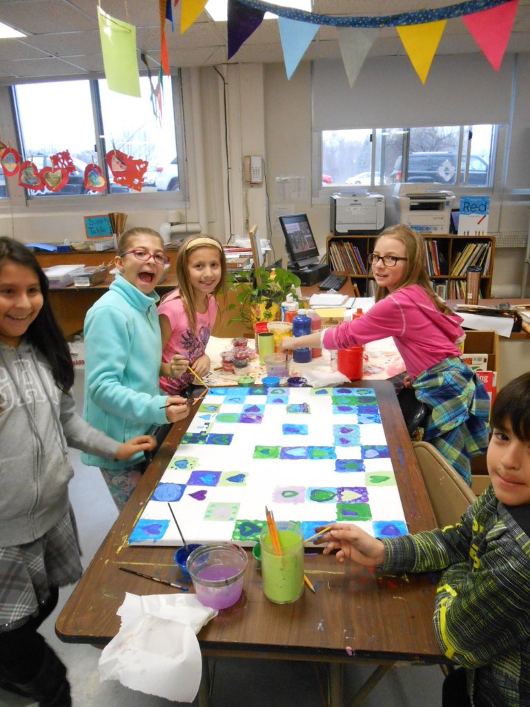 Third grade collaborative abstract painting