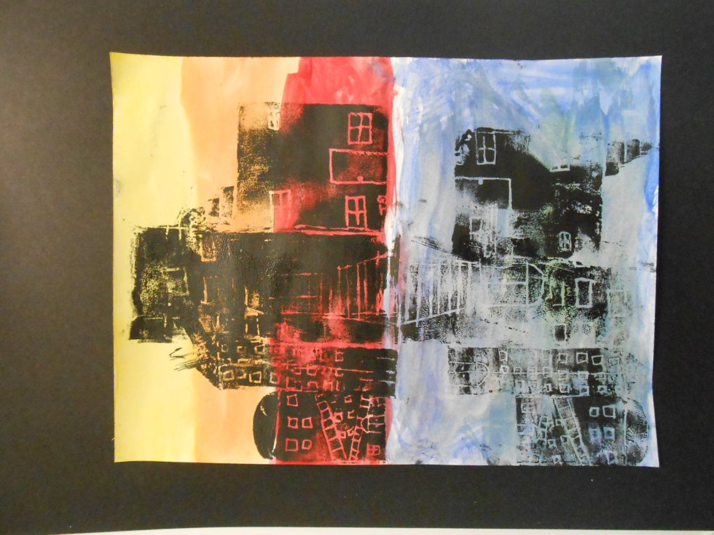 5th grade Architectural StudiesLearning to measure and planTurning the Architectural drawings into prints w/ reflections4th grade ”Heart” group painting inspired by Jim Dine3-4 year old class Bubble wrap painting Continuing our bubble theme with paint & soapy bubbles!